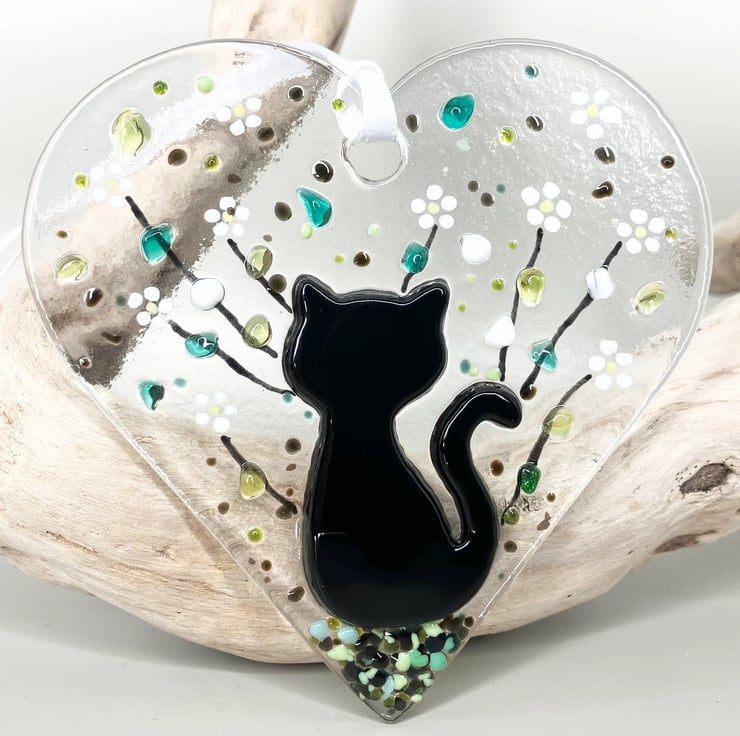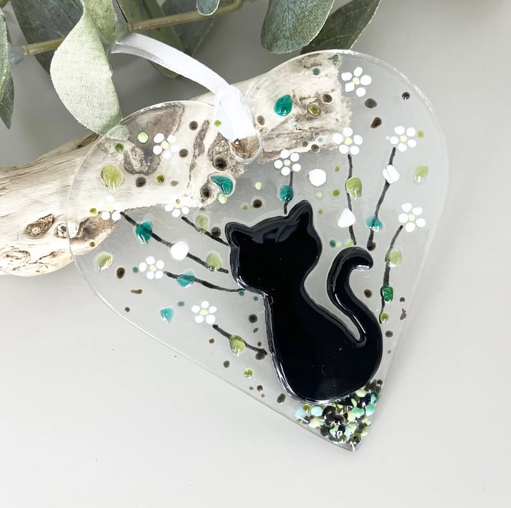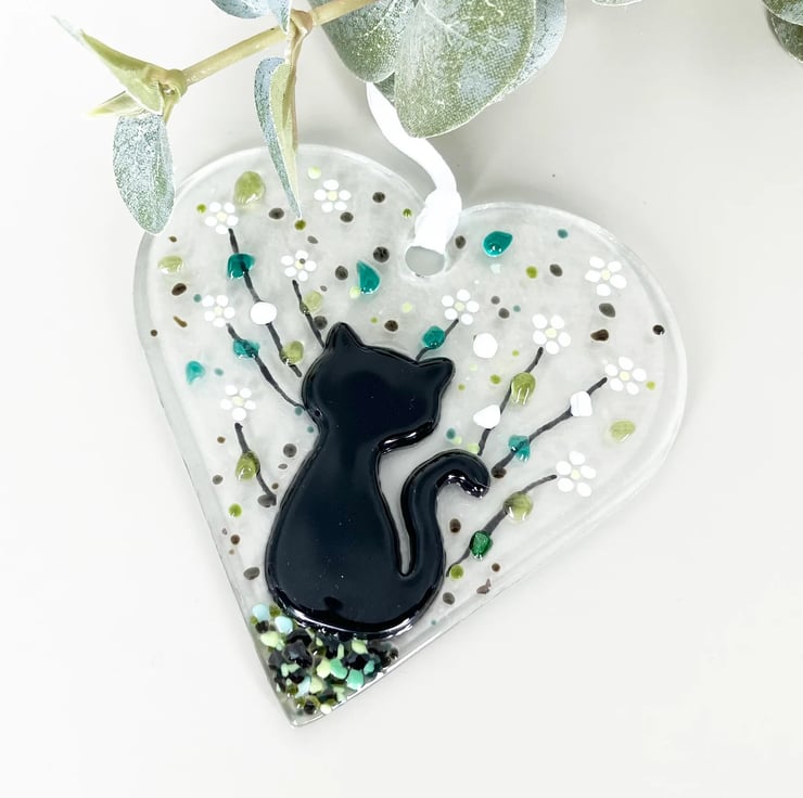 Handmade Fused Glass Cat Suncatcher