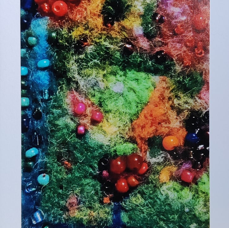Matt Print of one of a series of Original Needle felted designs with embroidery embellishments. Mounted on White Card.