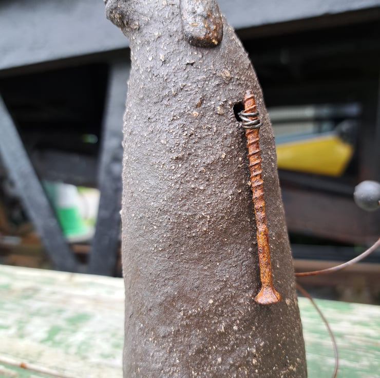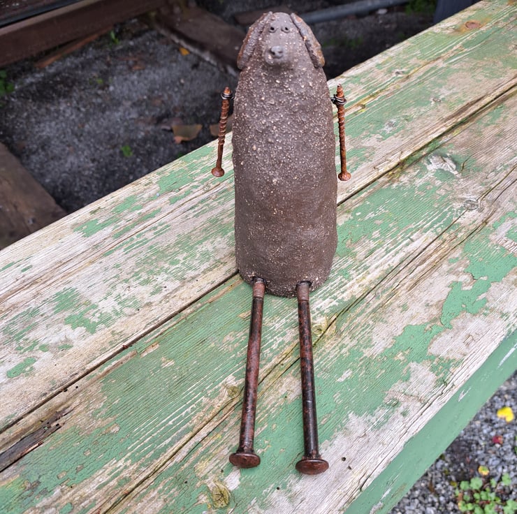 This is my primitive dog, inspired by Folk Art my dog has nails as legs, and screws as 'arms'.