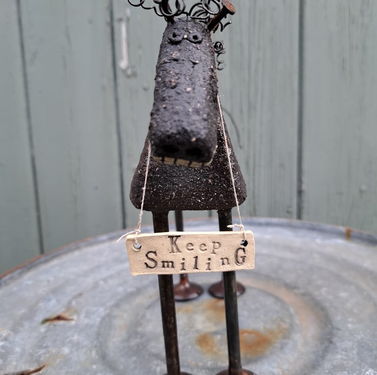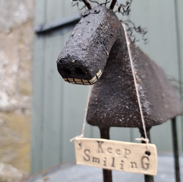 This horse is indeed smiling...and will arrive with his " keep smiling " sign.