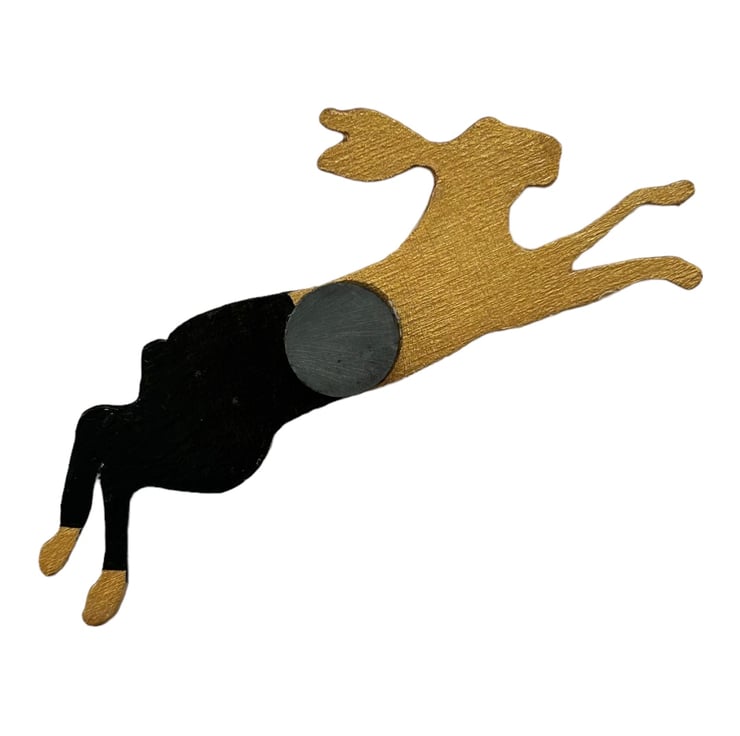 A weighty magnet on the reverse will ensure that this Running Hare will stay put!
