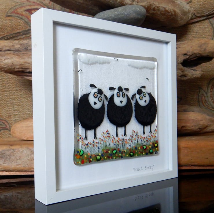 ''Black Sheep'' is made completely from glass which has been fused in my kiln. There is no enamel, glass paint or any other materials used; this picture is 100% pure bullseye fusing glass!