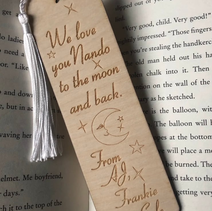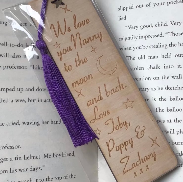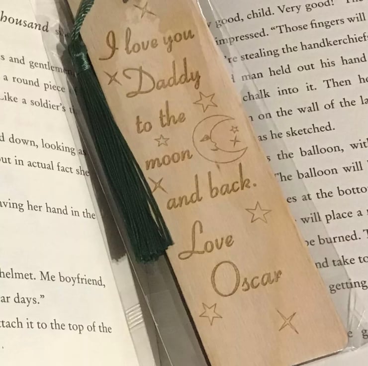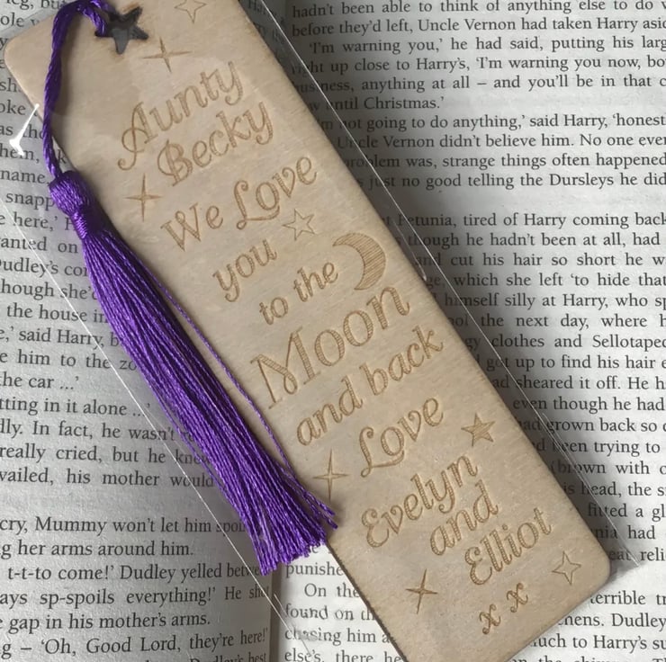 Lovely quality wooden bookmark, laser engraved and personalised with your choice of name. Supplied with tassel, if you require a specific colour please specify, if not a random colour will be supplied. This listing is for “love you to the moon and back” design, other designs available please see my other listings.