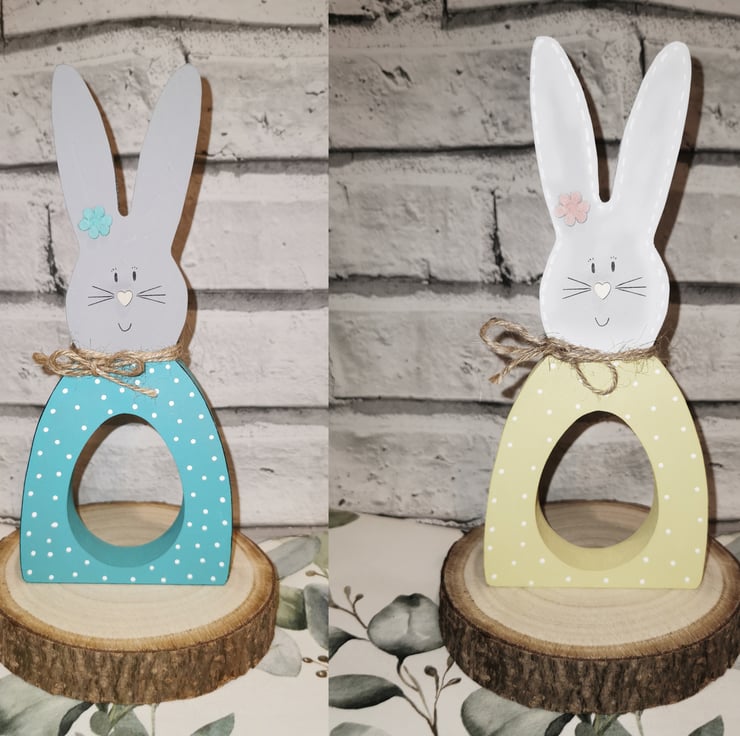Each bunny has a hole in the middle to hold your favourite Easter egg treat. Ideal Easter gifts for children or anyone who loves bunnies and a choccy egg!