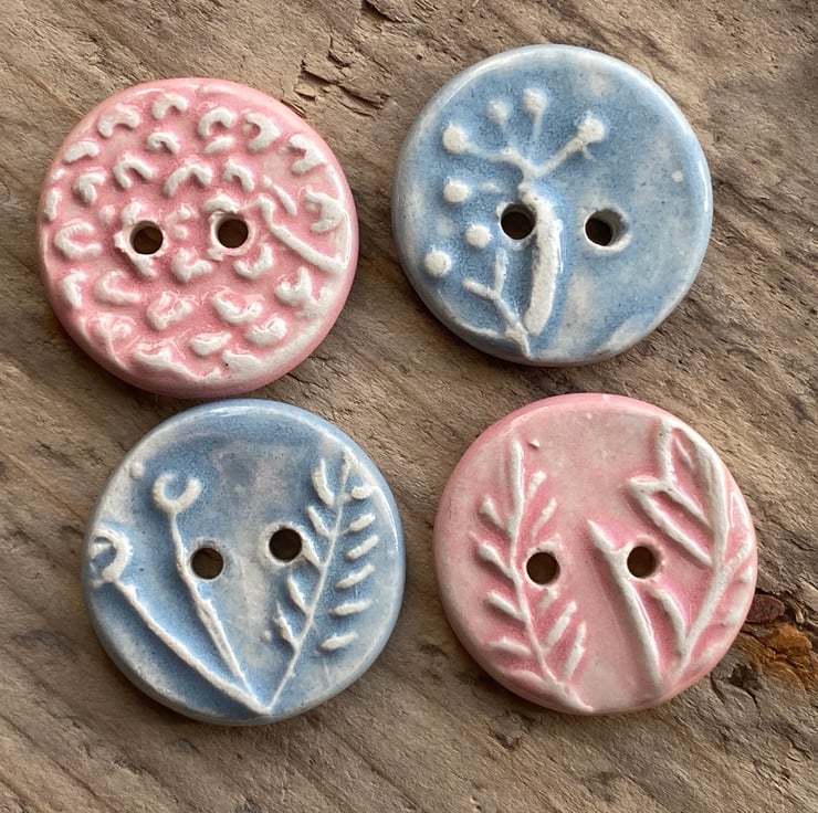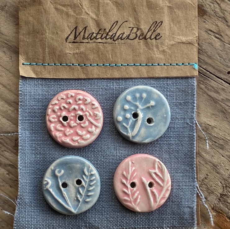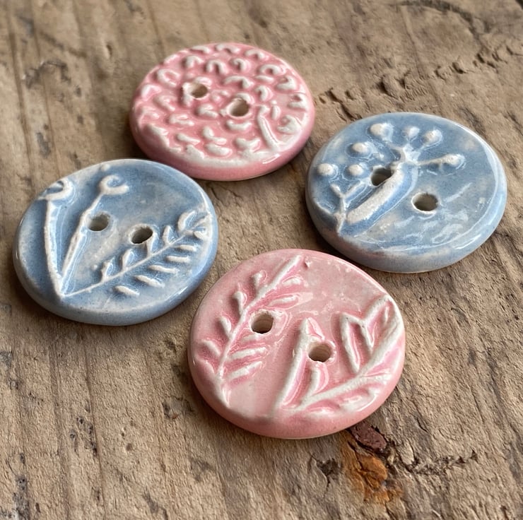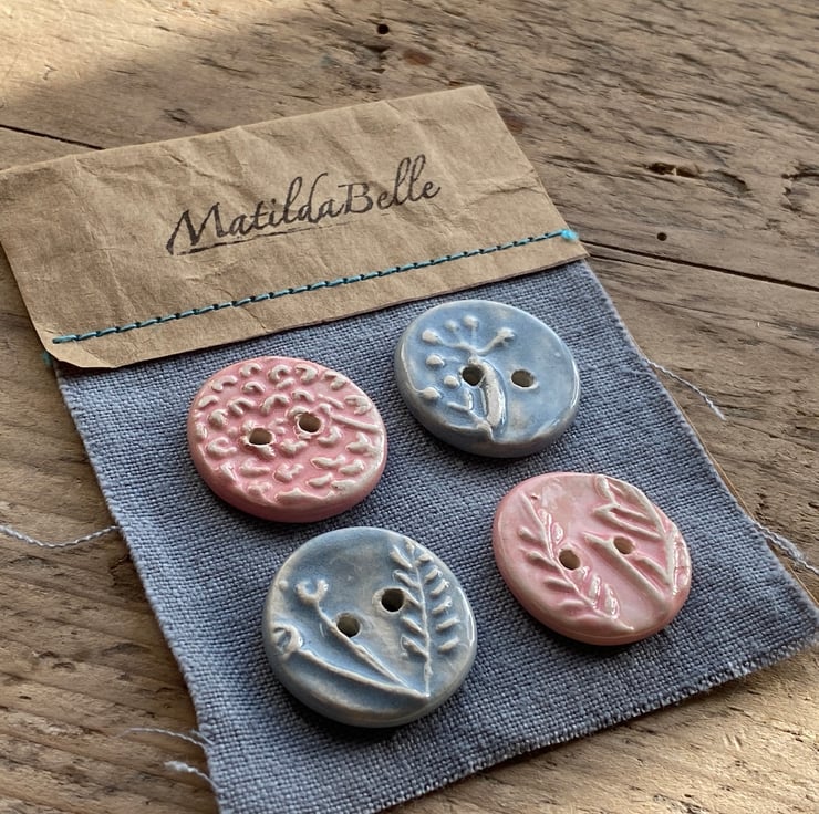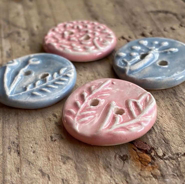 Each button has been impressed with a different carving of herbs that grow outside my workshop window giving a gentle raised design.