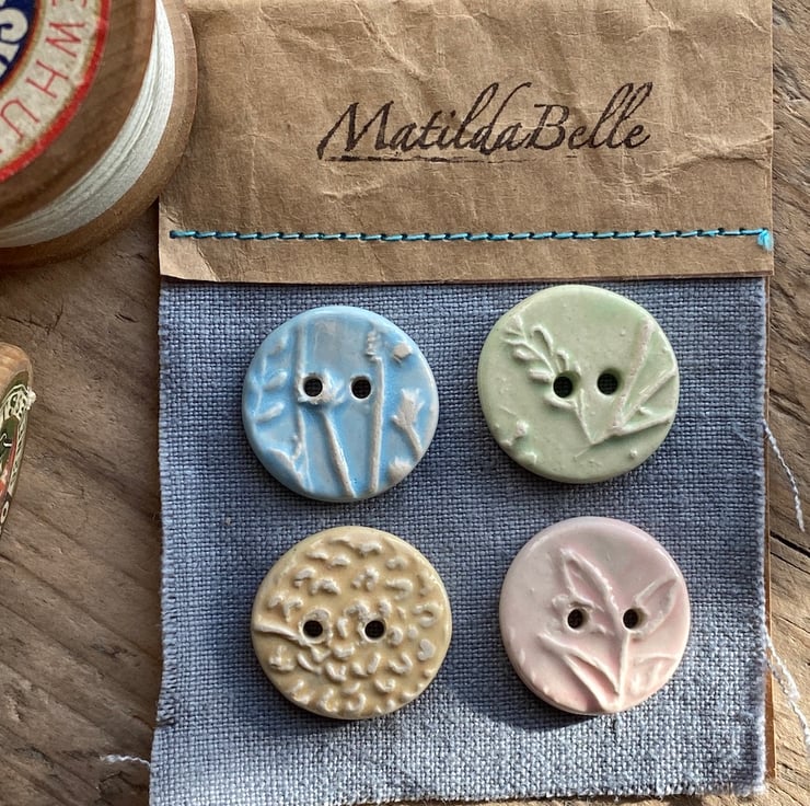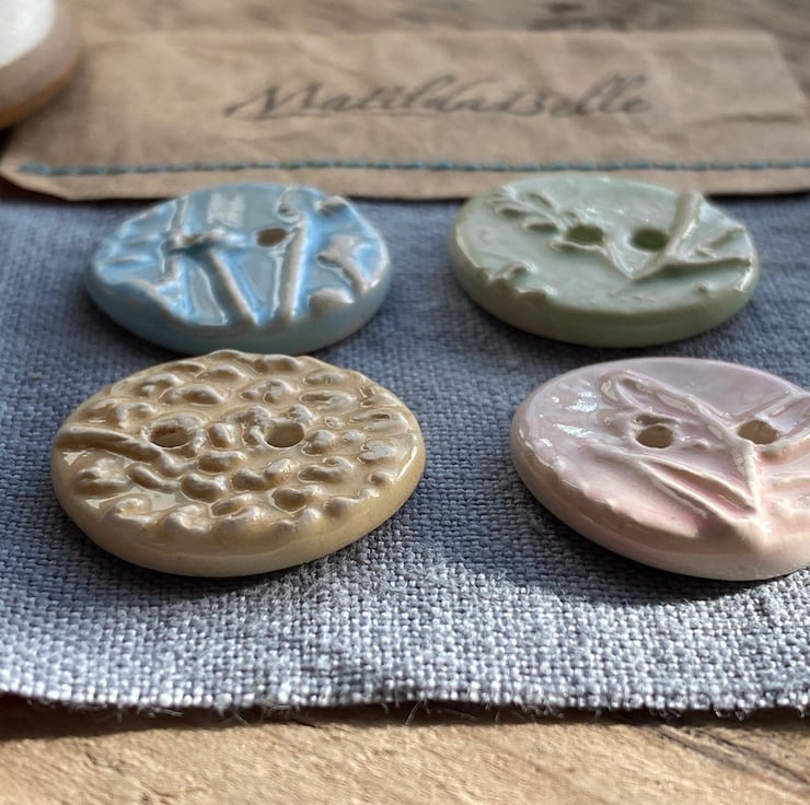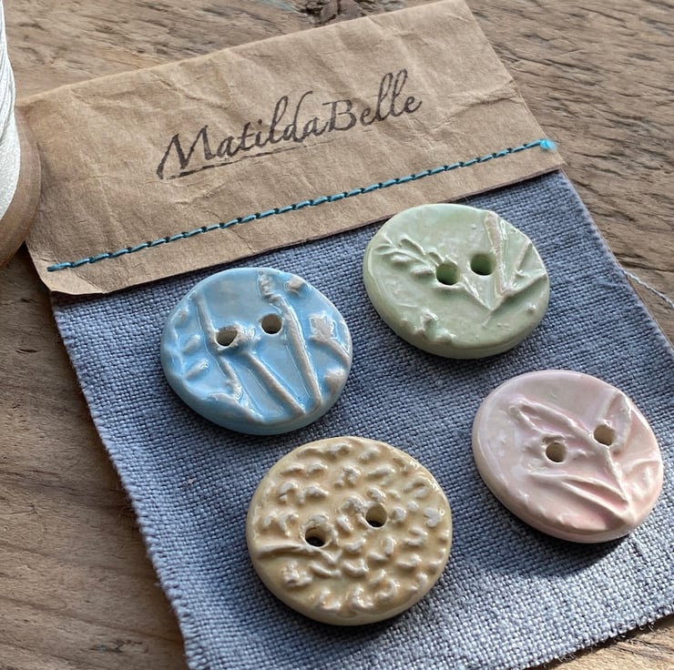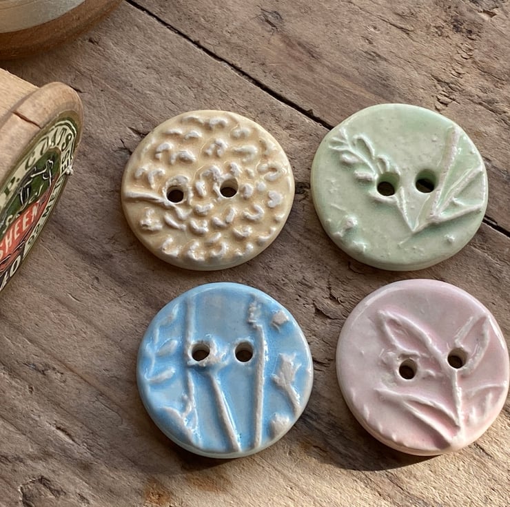 Each button has been impressed with a different carving of herbs that grow outside my workshop window giving a gentle raised design.