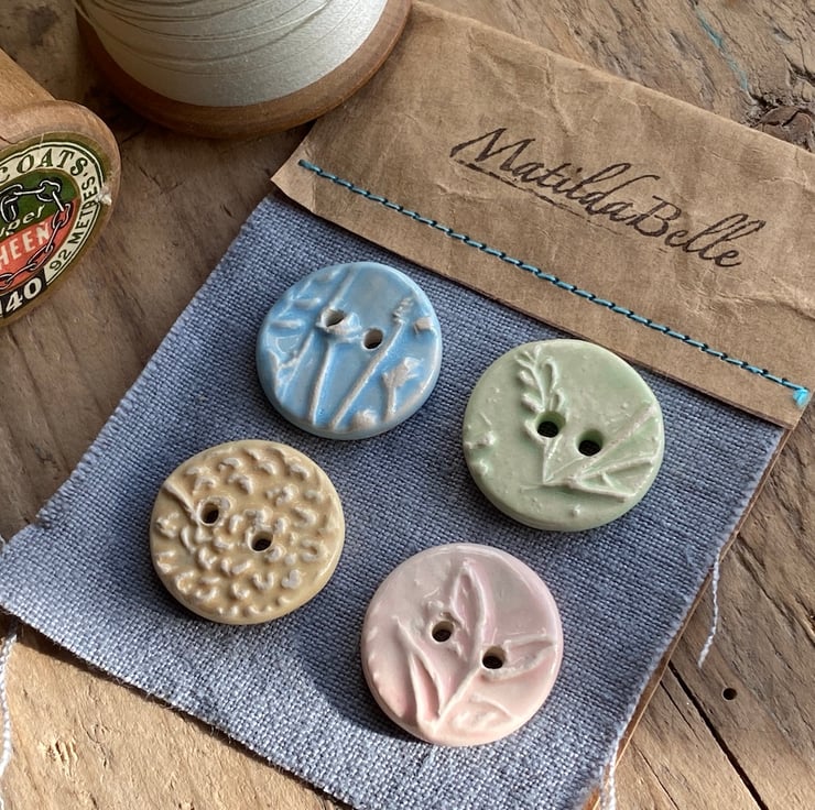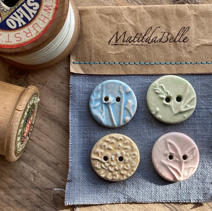 The rear of the buttons have been left unglazed showing the beautiful and smooth nature of clay. Each button has also been stamped on the rear with the MatildaBelle makers mark.