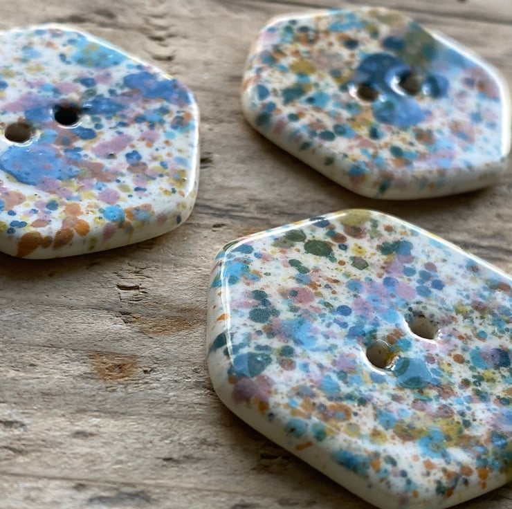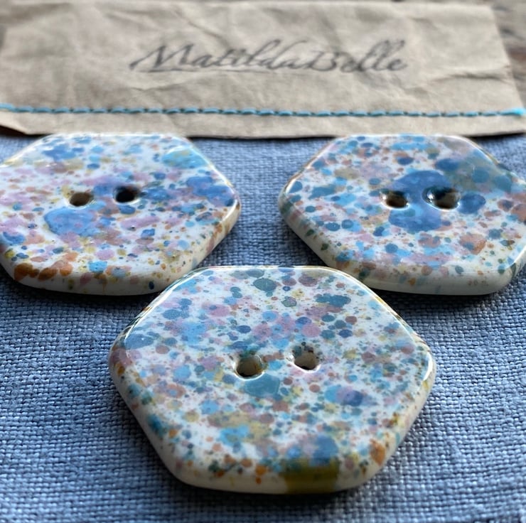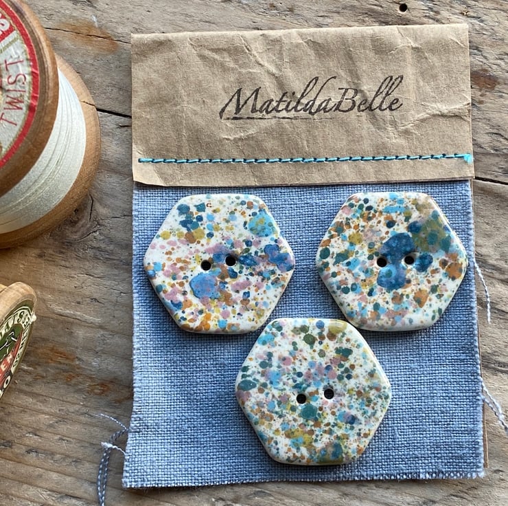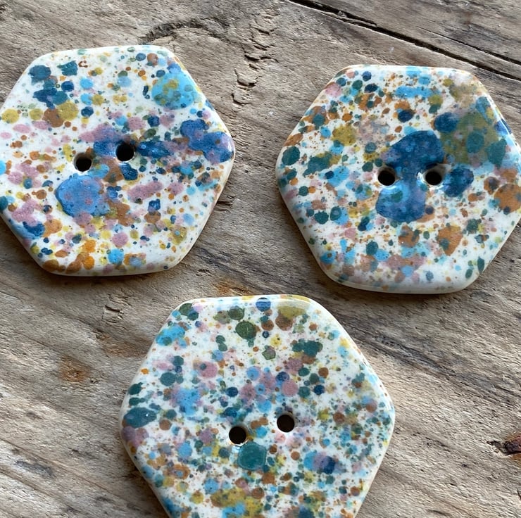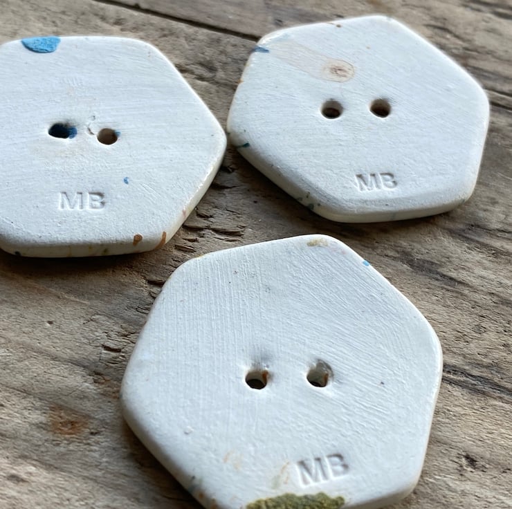 Beautiful set of 3 handmade Earthenware Ceramic Hexagon buttons.