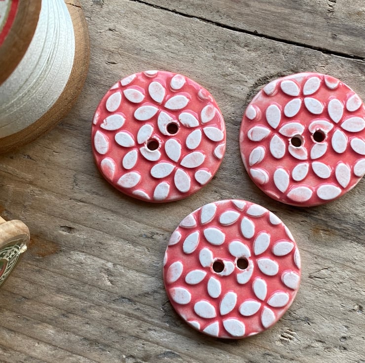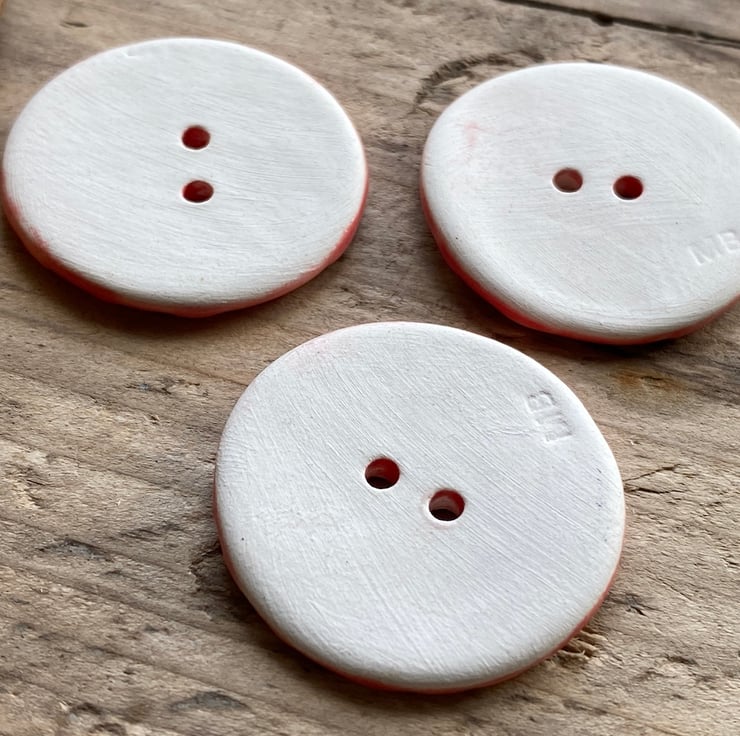 Beautiful set of 3 large Round handmade Earthenware Ceramic buttons.