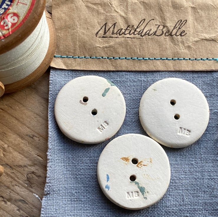 The rear of the buttons have been left unglazed showing the beautiful and smooth nature of clay. Each button has also been stamped on the rear with the MatildaBelle makers mark.