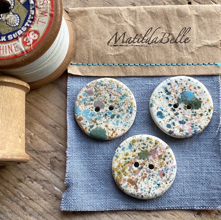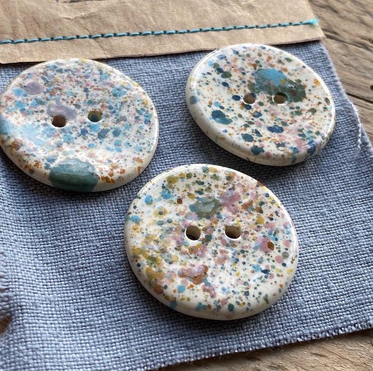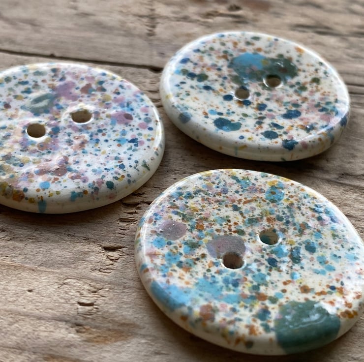 Beautiful set of 3 large Round handmade Earthenware Ceramic buttons.