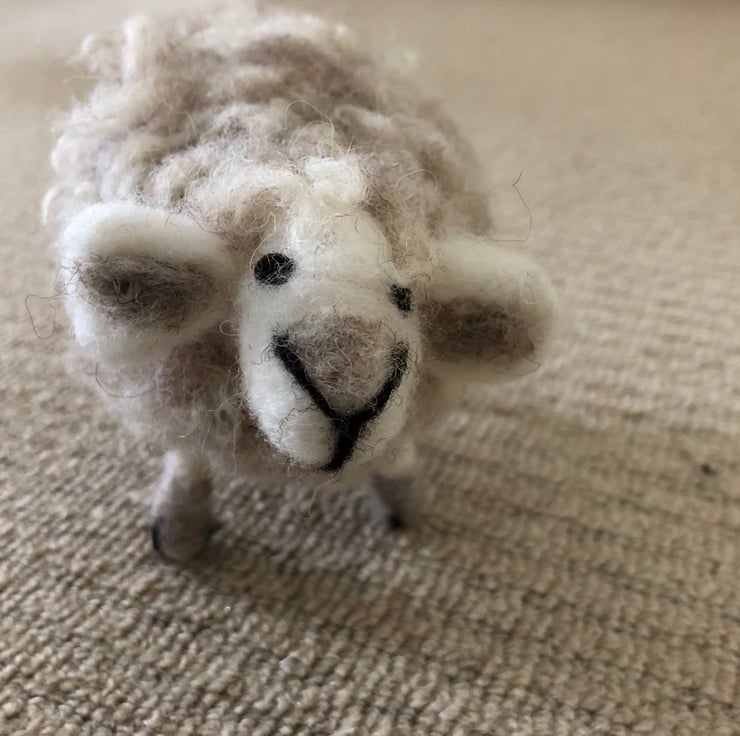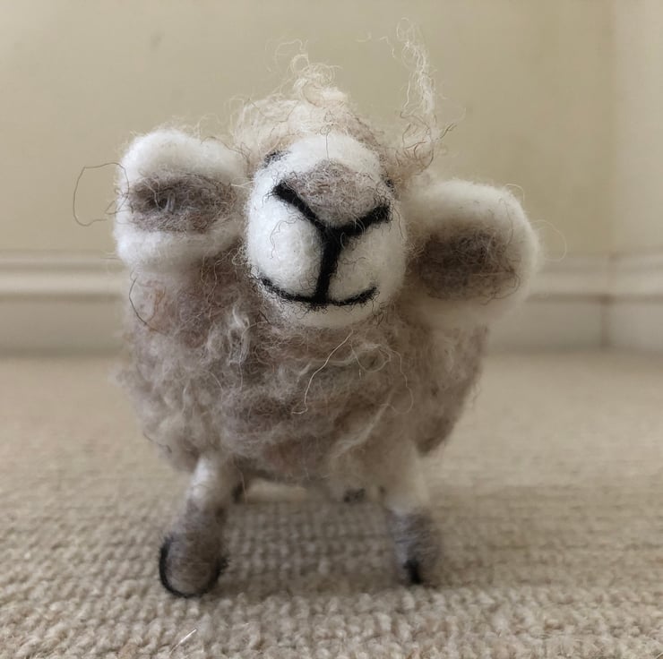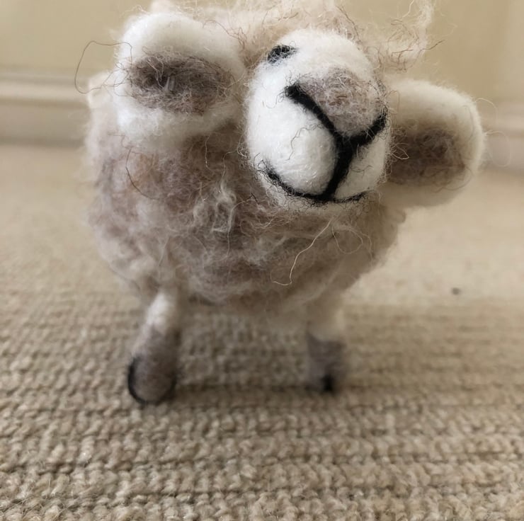A cute, hand-made to order, needle-felted sheep using only 100% wool. Wonky is made using the wool from our own sheep, who live on our land on the edge of Dartmoor. I like to name each sheep I make based on either the sheep they remind me of, or the sheep whose fleece I have used. Each little sheep's head is often positioned on an angle as it reminds me of the way in which our sheep look and stretch for treats (you can see some of our sheep on our shop info page)! We actually have a sheep called Wonky and you can see her in the photos with her lambs.