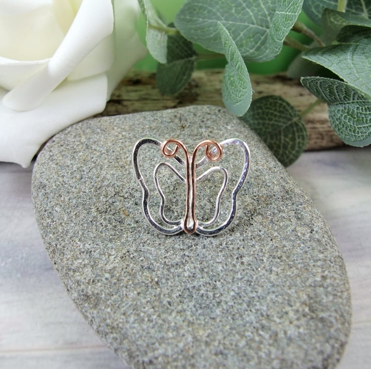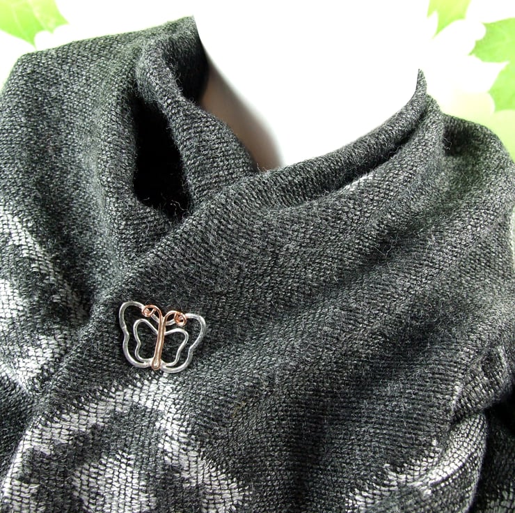 Butterfly Brooch, handcrafted Butterfly brooch in copper and sterling silver. Could also be worn as a lighter shawl pin.