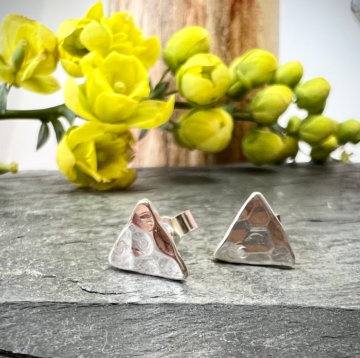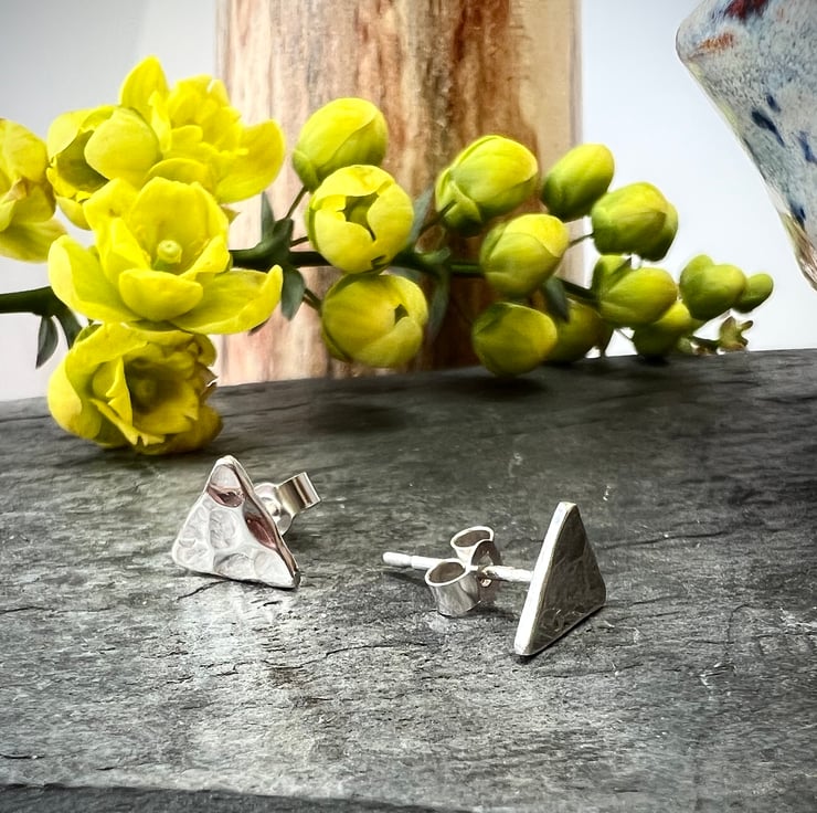 These beautiful every day earrings are made from recycled 925 sterling silver. Hammered with a distinctive pattern, then buffed and finished to a sparkling shine.