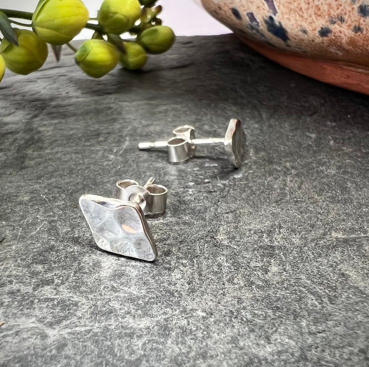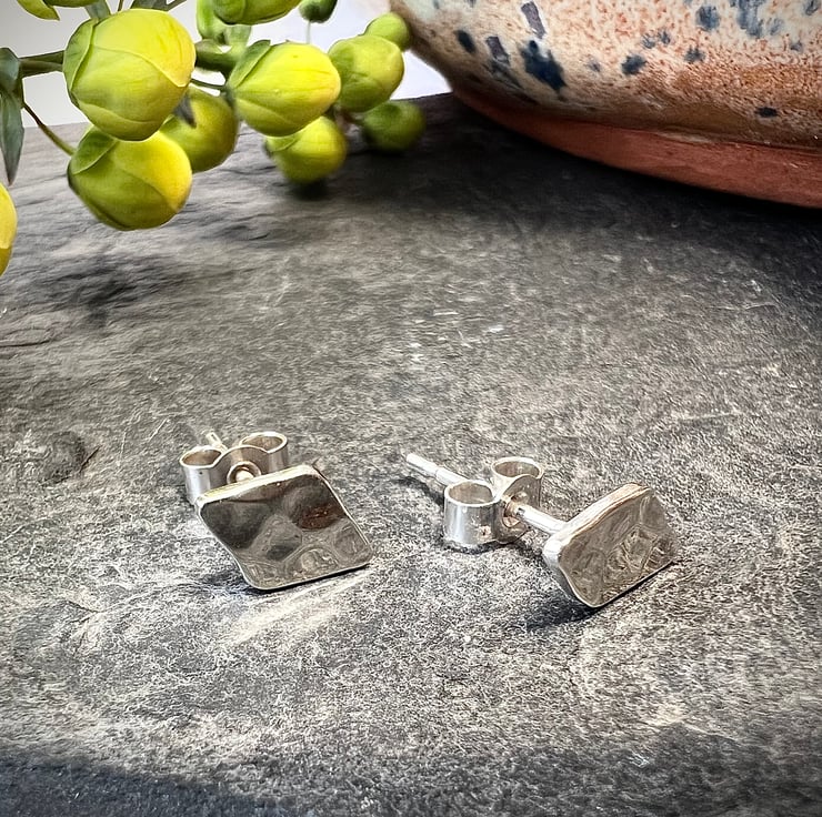 These beautiful every day earrings are made from recycled 925 sterling silver. Hammered with a distinctive pattern which is then buffed and finished to a sparkling shine.