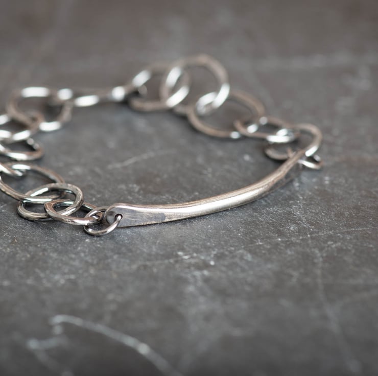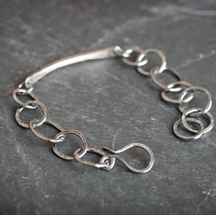 The bracelet has been oxidised to a dark patina, which I have then polished away slightly to show off the textures.