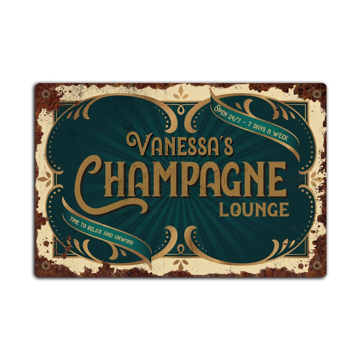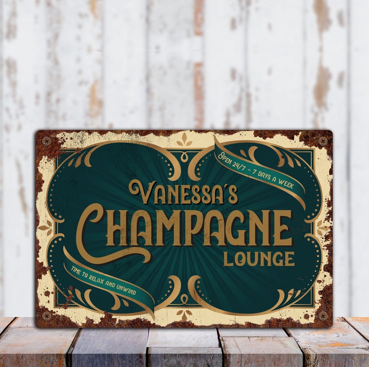 Vintage PERSONALISED Champagne Lounge Metal Sign, Tin Sign, Metal Plaque,