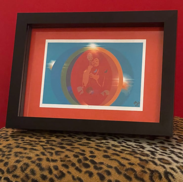 A5 box framed gloss print, mounted on red background….part of the A5 series recently put together, signed and limited, ready to hang or stand.