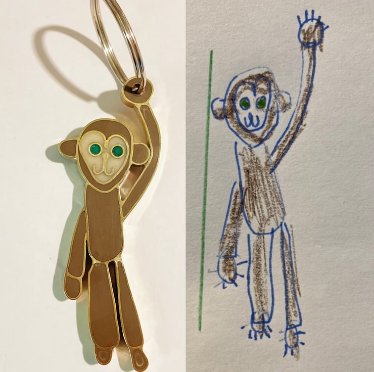 This monkey keyring is handmade from a child’s drawing for Dads special birthday.