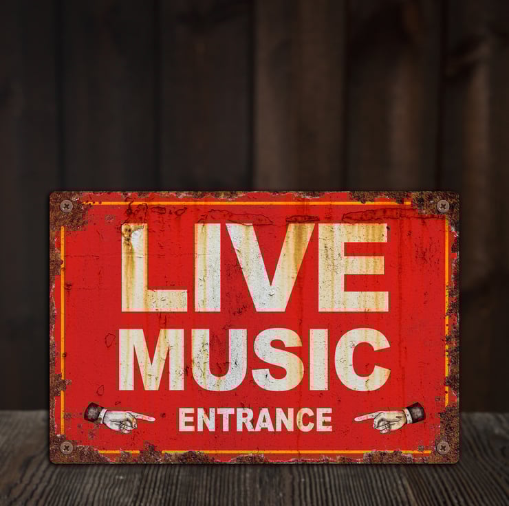 Vintage Style Live Music Tin Sign, Retro Music Plaque, Metal Plaque, Man Cave