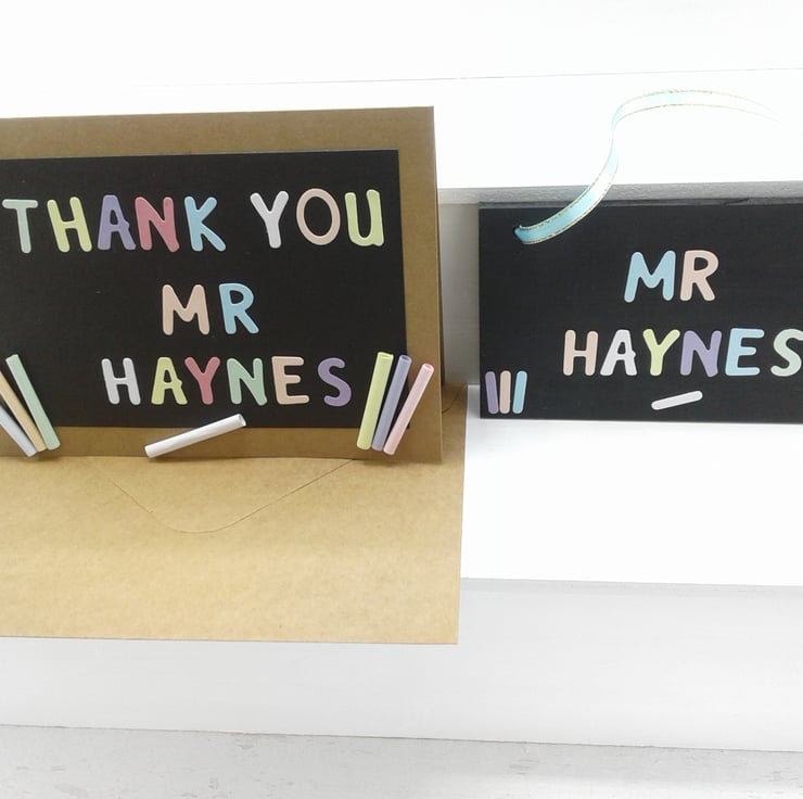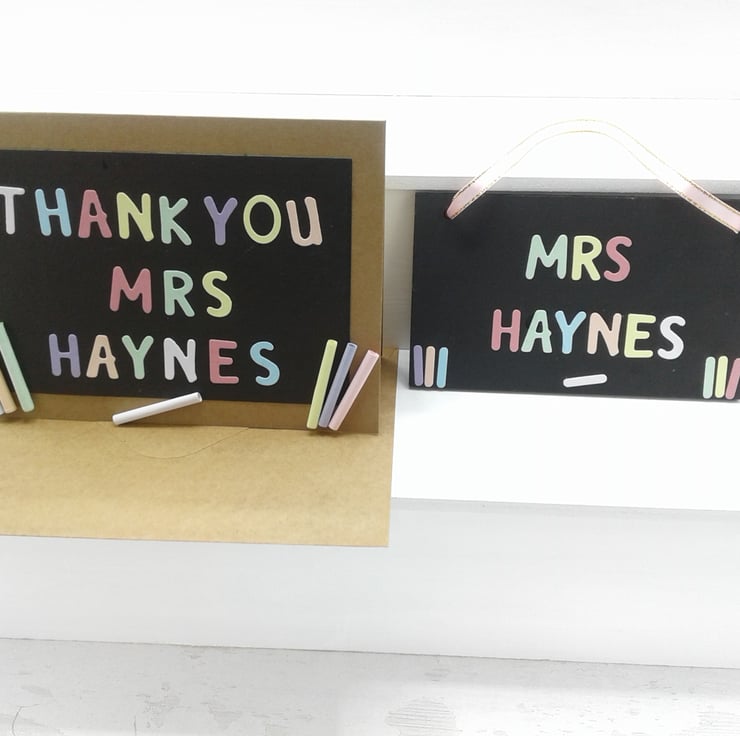This personalised thank you card and envelope, together with the personalised wooden sign make a lovely gift for showing your appreciation for teachers, teaching assistants and nursery staff.