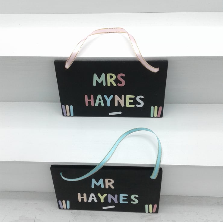This listing is for a personalised thank you card and envelope, plus a personalised wooden sign.