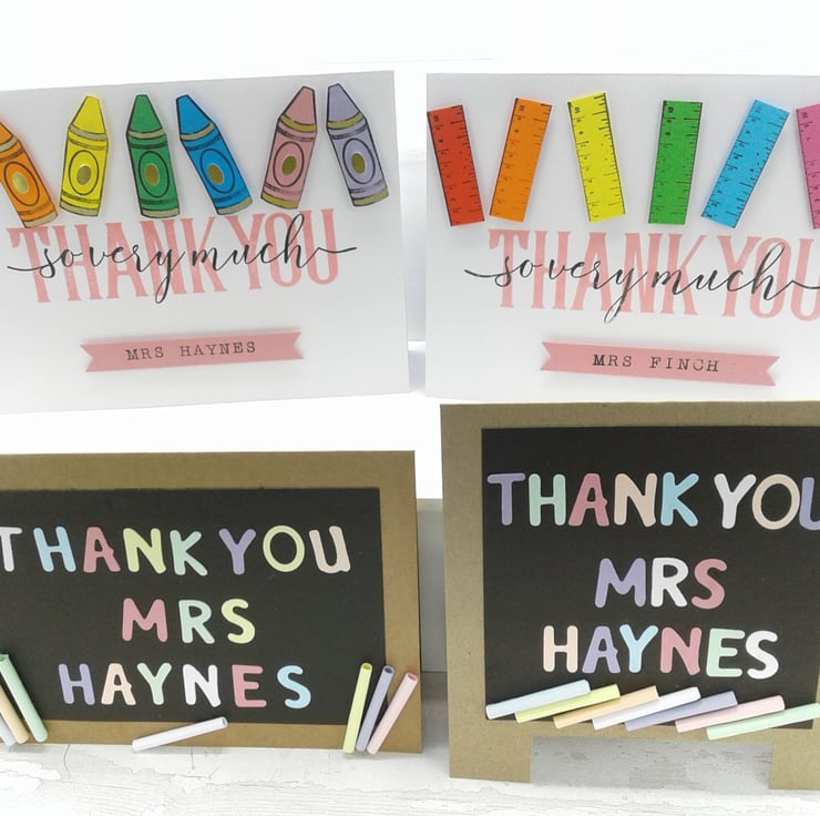 This set of 4 personalised cards and envelopes are a perfect way to show your appreciation of those staff members employed within the teaching professions.