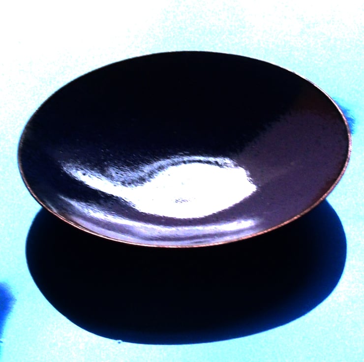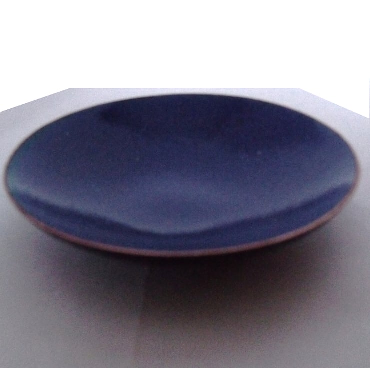 This bowl is unusual in that I have left it as a single colour. After building a base of clear enamel over the copper bowl I added a layer of dark blue and I have left it at that.