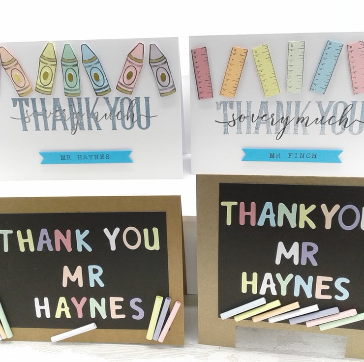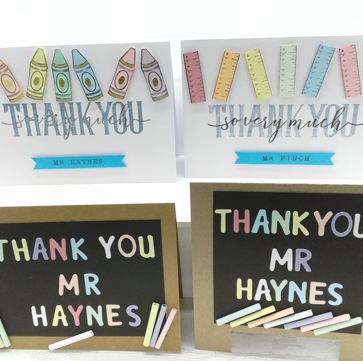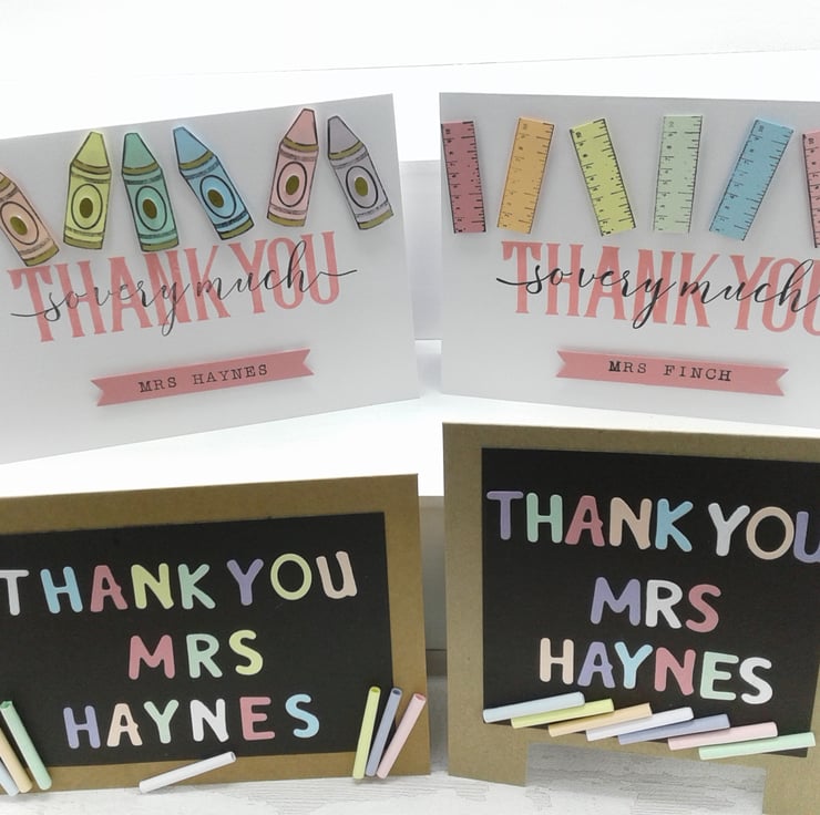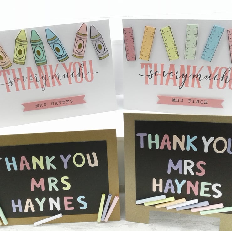 This set of 4 personalised cards with envelopes are a lovely, cost effective way to show your appreciation and thanks to those in the teaching professions.
