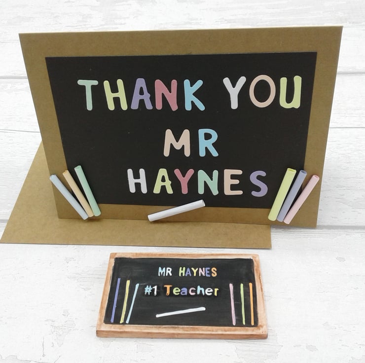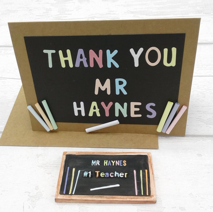 This gift set comprising of a personalised thank you card with envelope, plus a personalised ceramic fridge magnet, are a lovely, cost effective way to show your appreciation to teachers, teaching assistants and nursery staff.