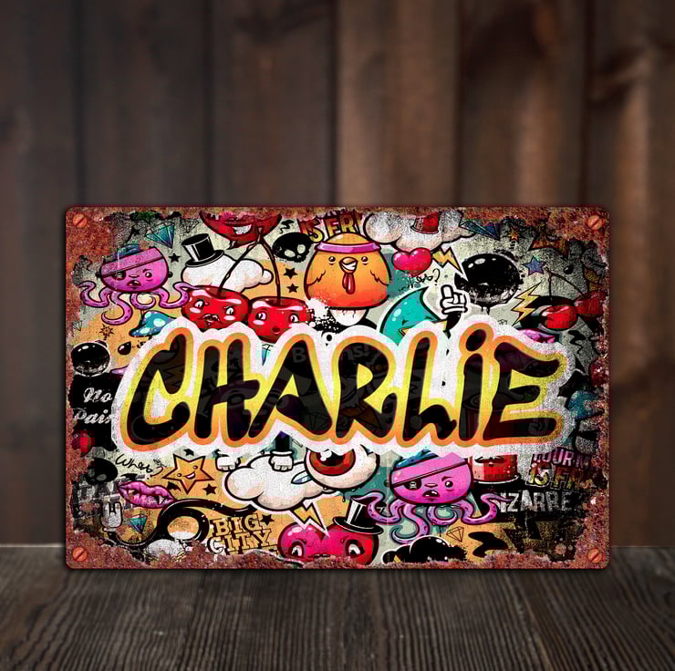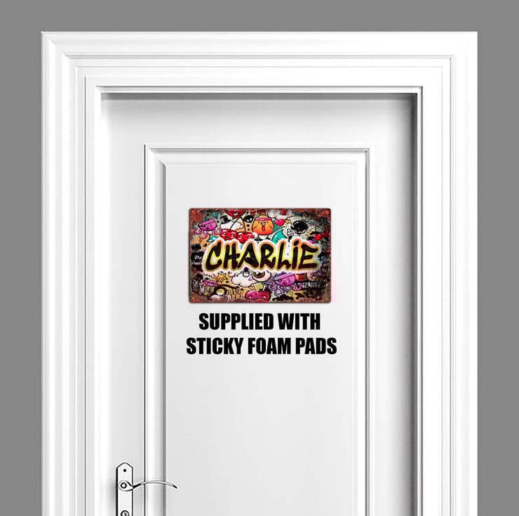 Personalised Bedroom Name Plaque, Graffiti Style Metal Name Plaque