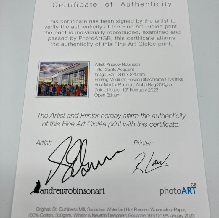 Titled ‘Saints Acquaint’ this is a unique Southampton F.C print direct from myself the artist. My artworks are a celebration of the match day experience and of stadium architecture.