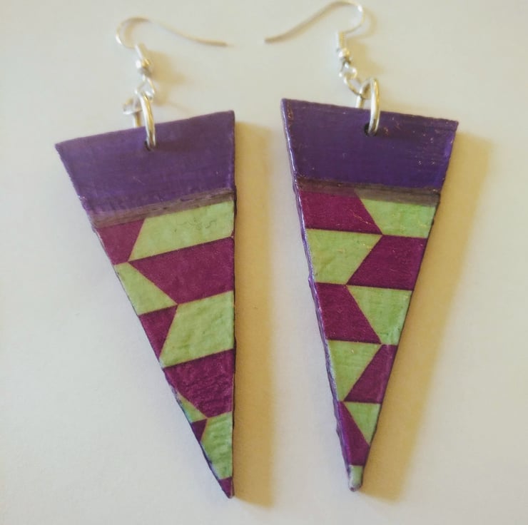Contemporary geometric wood earrings.