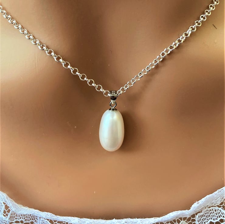 The Simplicity of the Freshwater Pearl drop & 925 Silver chain combined are very popular with Brides o Be..