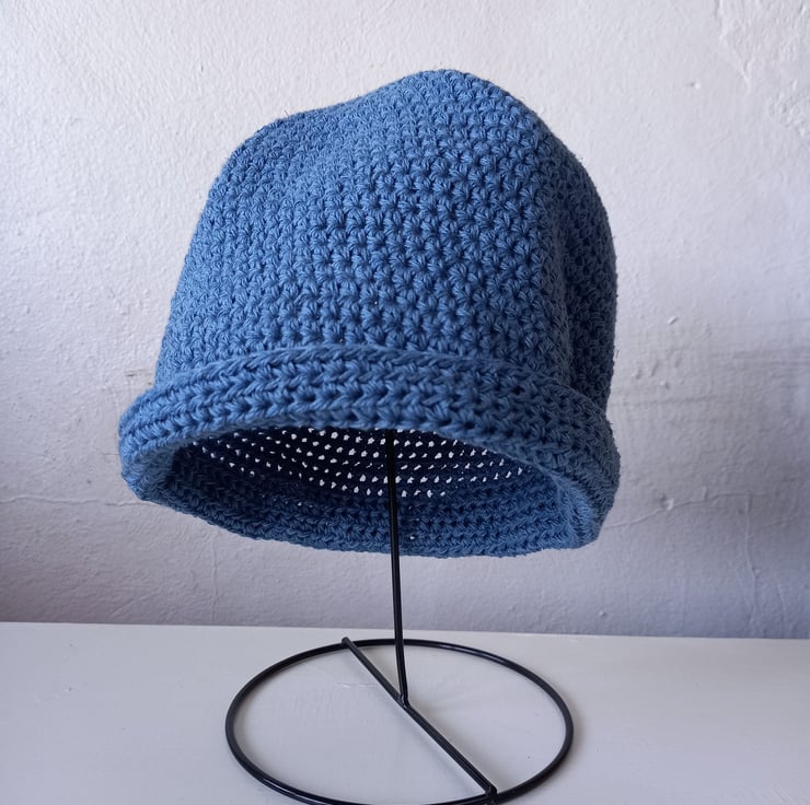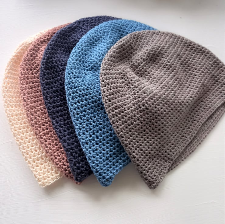 Instructions to make a simple hat, for adults or children, in cotton & linen yarn.