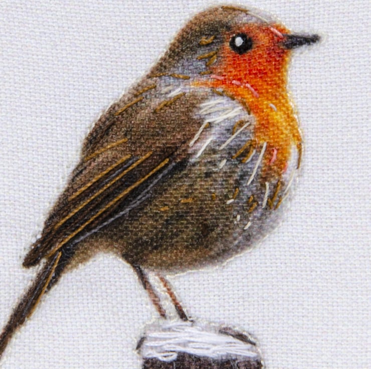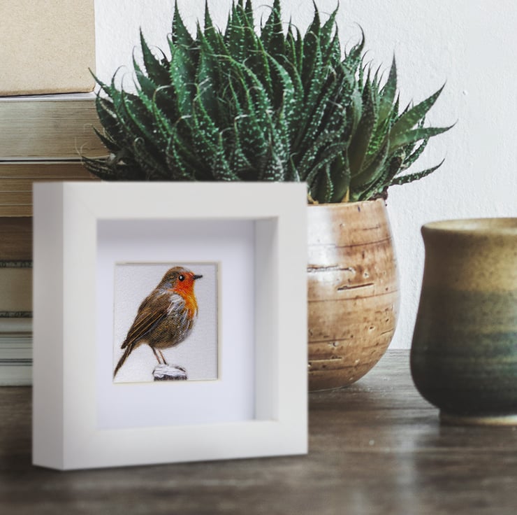 Robin - a hand embellished, textile print, which I have carefully stitched and framed in a small box frame.