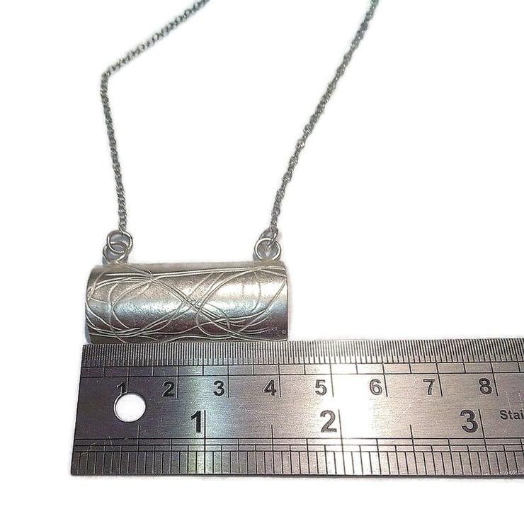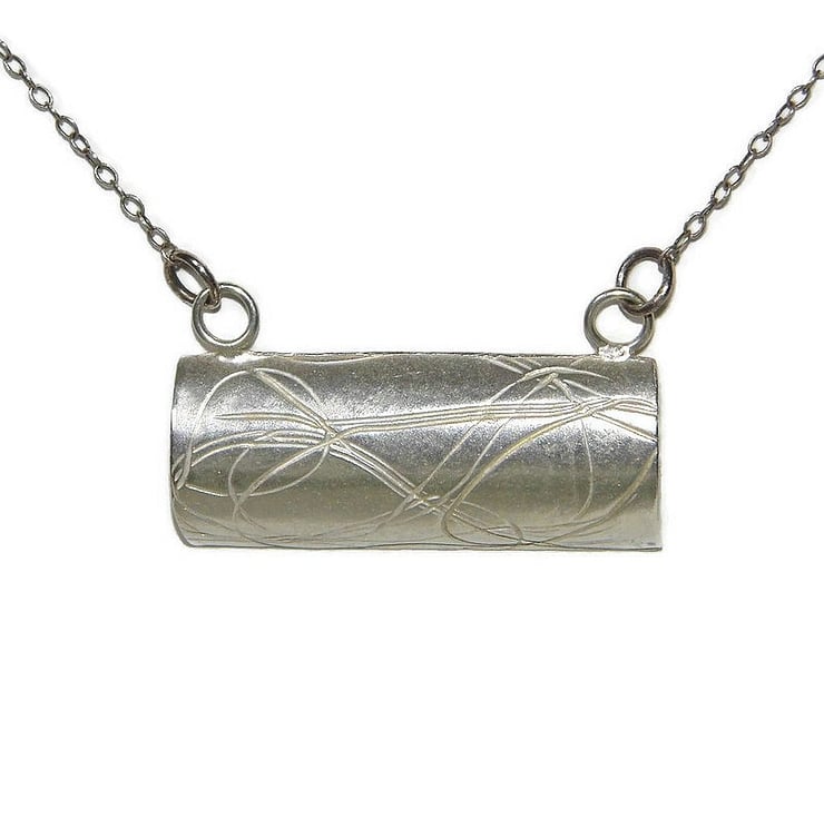 Discover the beauty of minimalist artistry with this Handmade Scribble Print Sterling Silver Pendant. Crafted with passion and precision, this one of a kind pendant features a distinctive, roller printed scribble pattern that sets it apart from ordinary jewellery. The pendant's abstract design makes it the perfect statement piece for those who appreciate modern, artistic jewellery.