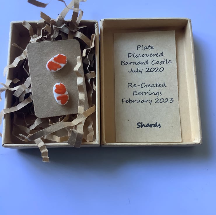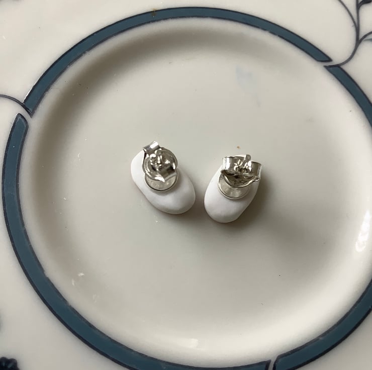 The idea is to re use ceramics, to create new things from old lost pieces. The earrings are similar in shape but not exact, the intention is to keep the original feel of the material, the jewellery is not meant to be highly polished or perfect.
