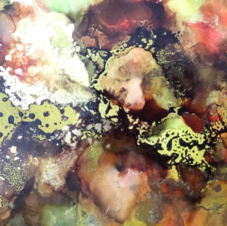 I love the combination of colours and effects created with the alcohol inks, creating a fabulous piece of atmospheric abstract art.