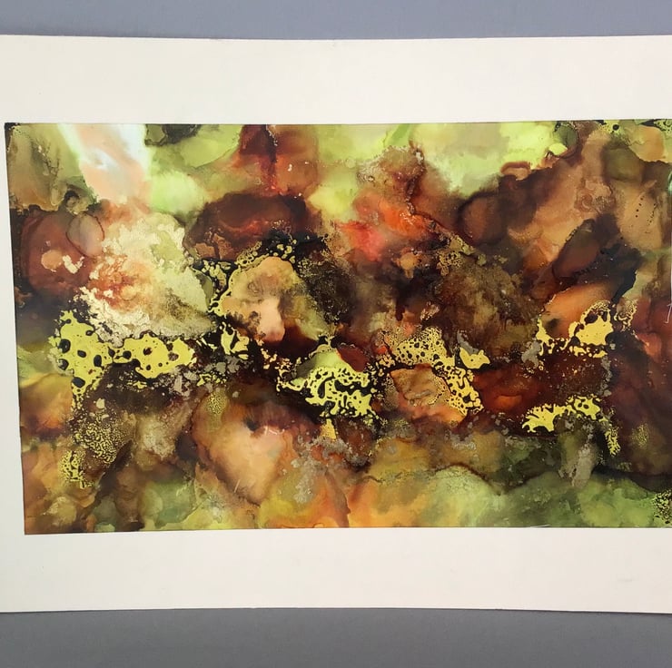 Unique painting using alcohol inks to create a piece of abstract art. Measures 30cm x 21cm, Yupo paper, mounted on cream card.
