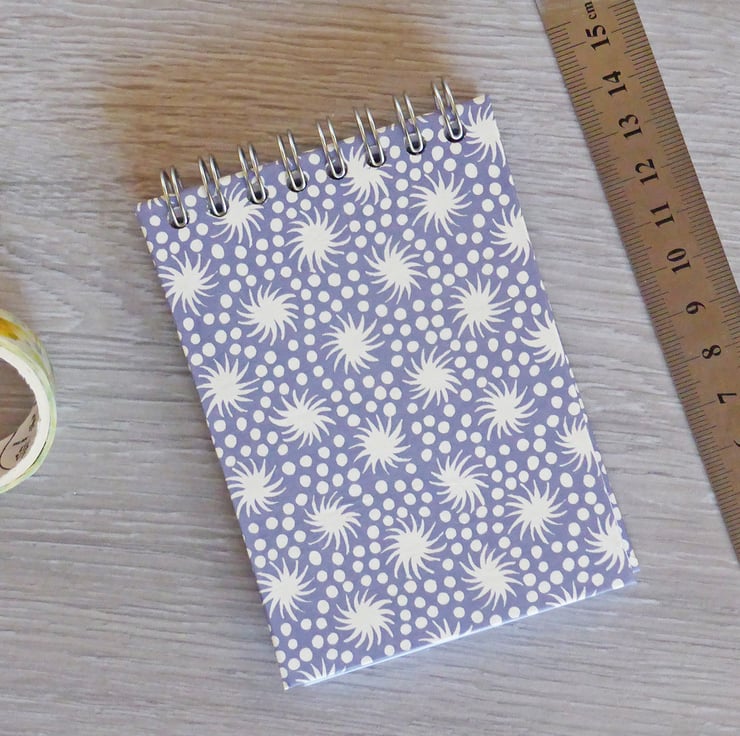 Handmade Notebook with Spiral bind A7 with in star and dot design covers in grey