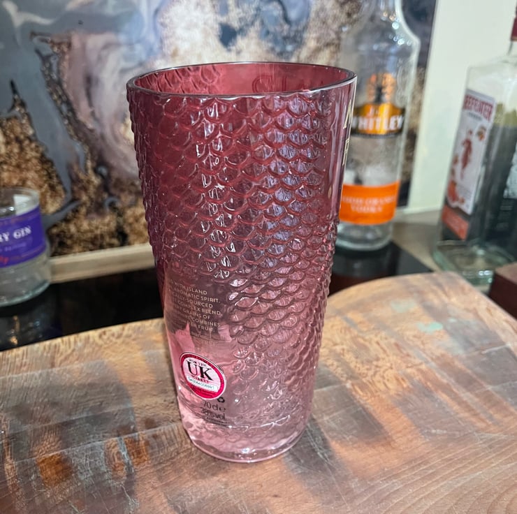 Glass made from an Isle of White Mermaid Pink Gin Bottle, these are very challenging to do due to the scales pattern