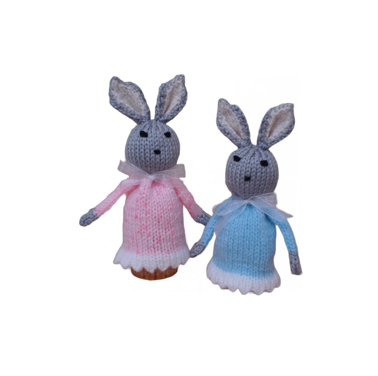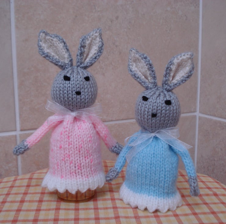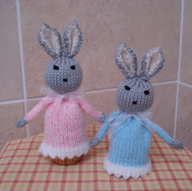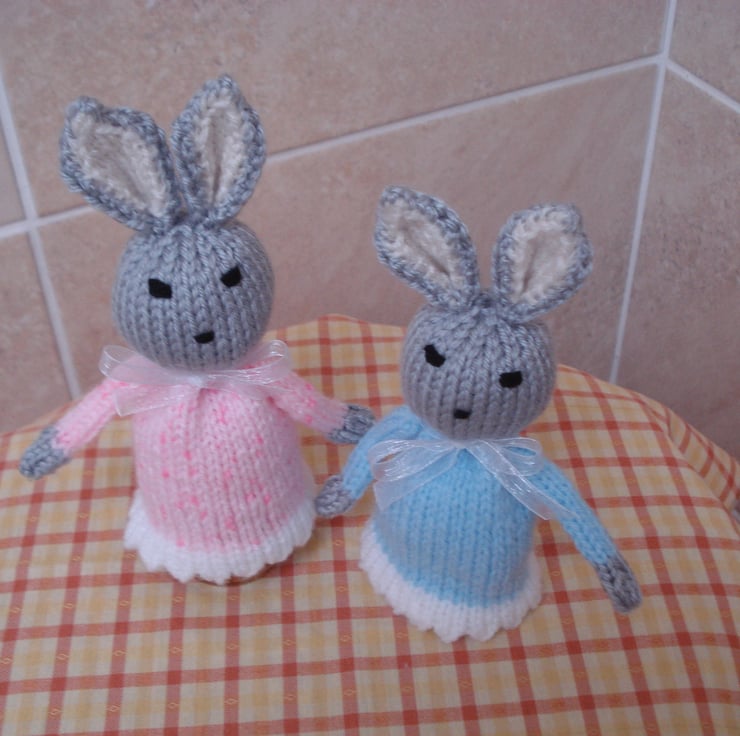 Pair Of Egg Cosy Bunny Rabbits Ready For Breakfast Pink And Blue (R904)