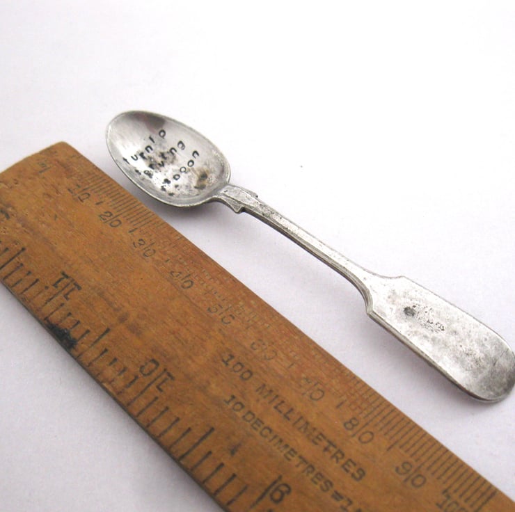 I have lots more spoons of all shapes and sizes so if you would like something else stamped on a spoon, not necessarily in tiny wobbly lettering, drop me a message and I'll see whether I can make it happen!