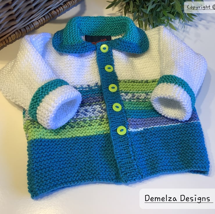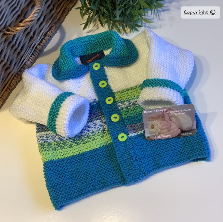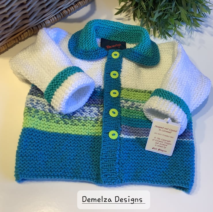 A very unique baby cardigan designed and hand crafted using quality branded machine washable British and French manufactured yarns. I have designed this product for either sex babies, especially if gifting for the first born within a family network. The cardigan has the designer garment label attached to the back neck edge with the care instructions woven within it for lasting reference and as proof of it's origins.