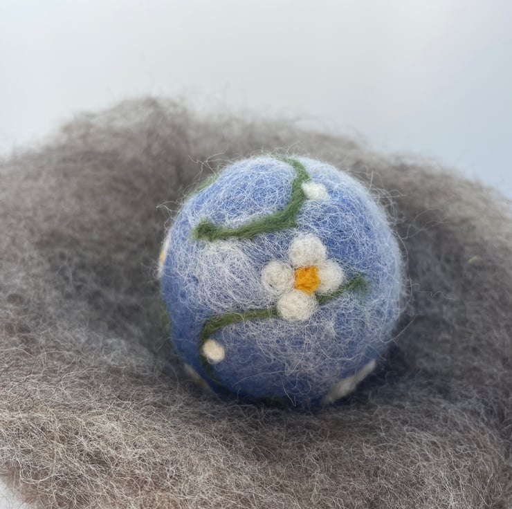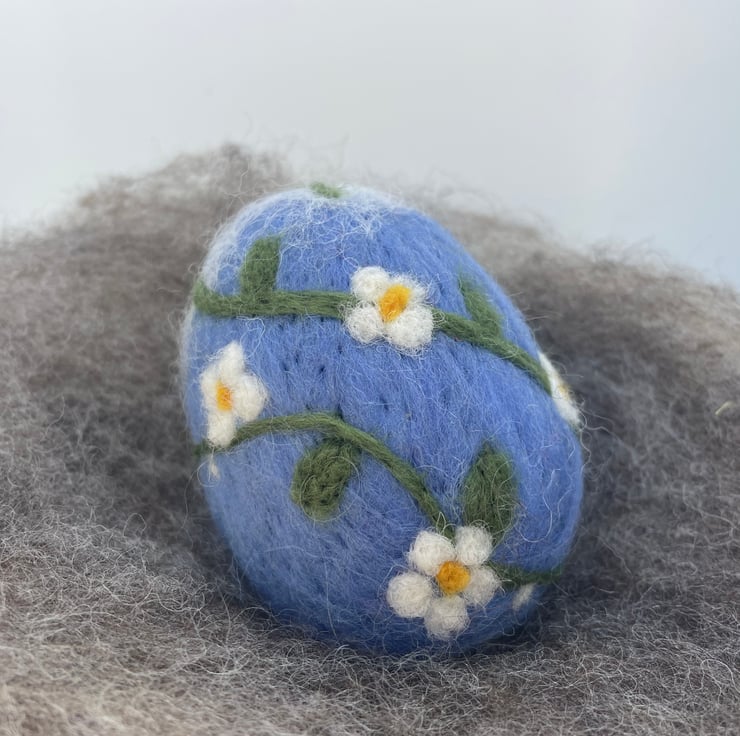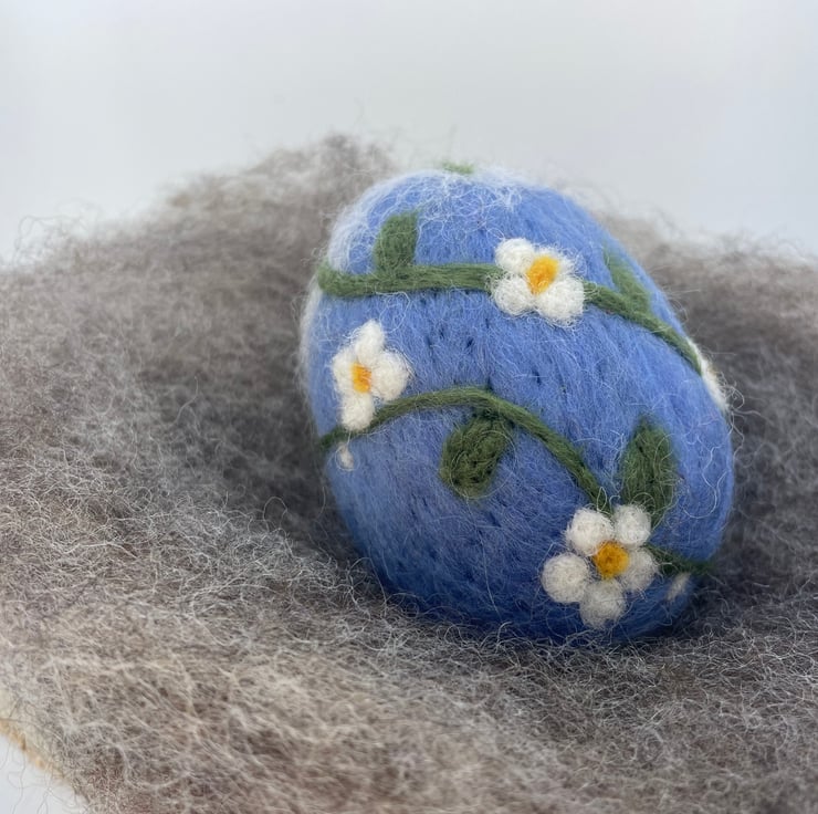 Felted Easter Egg, Needle Felt Easter Decoration, Blue, Daisy, Flowers