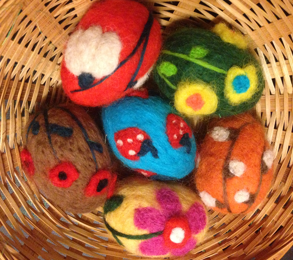 Needle felting is very time consuming. By jabbing barbed needles thousands of times into unspun wool to compact the fibers.