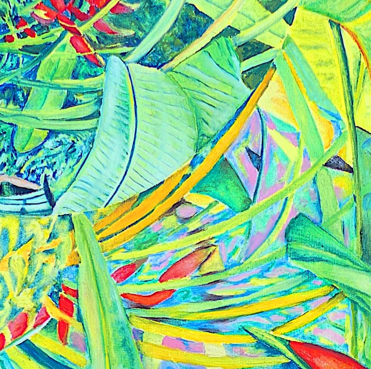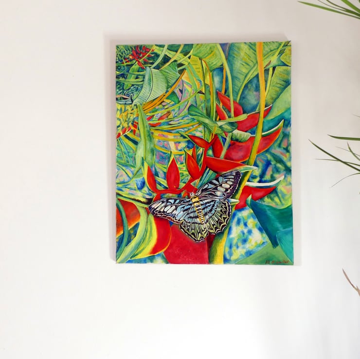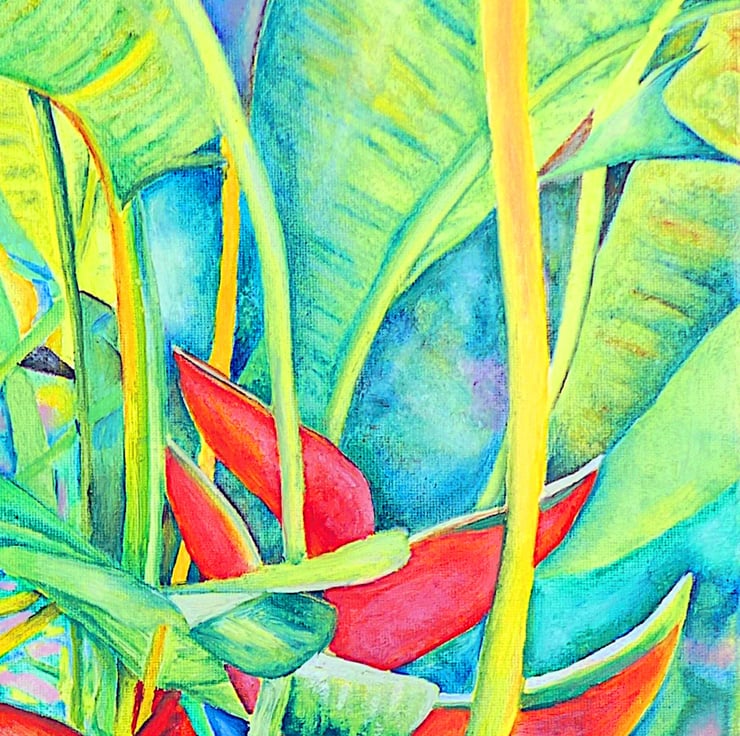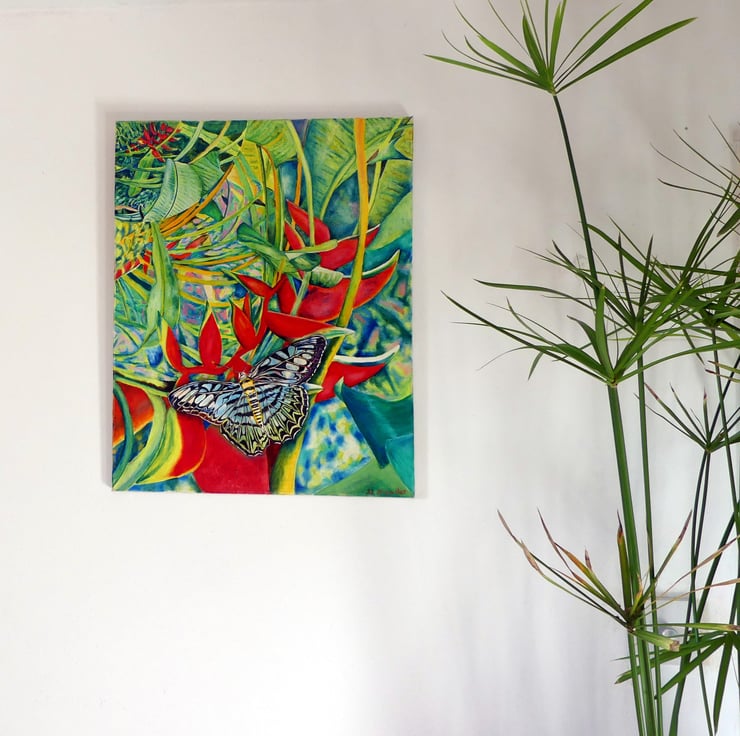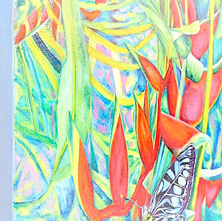 Tropical Scene with Lobster Claw Plant Original Oil Painting