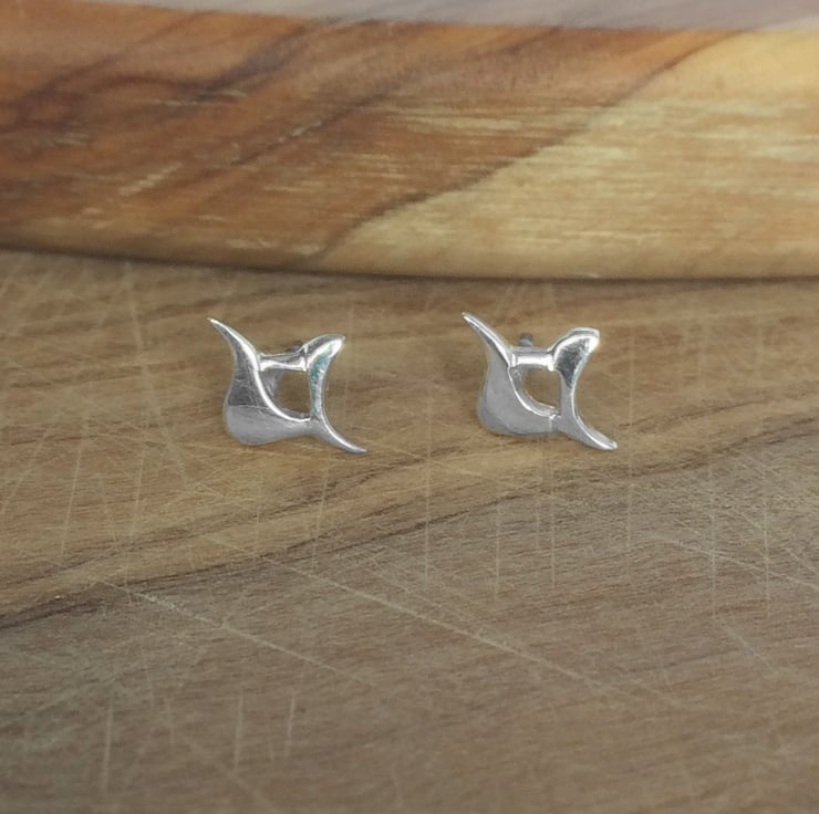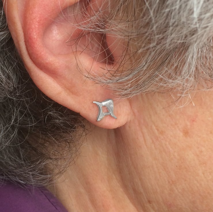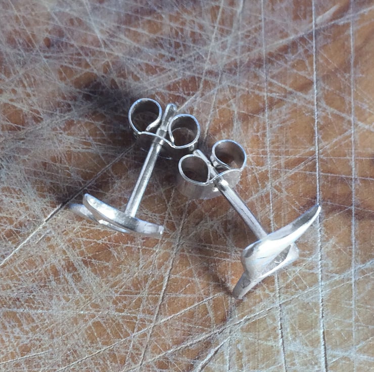 A petite pair of sterling silver stud earrings for everyday use. Cast from a model of mine, they contain my Sheffield hallmark. The grooved stud wires give a safe click for the scrolls.