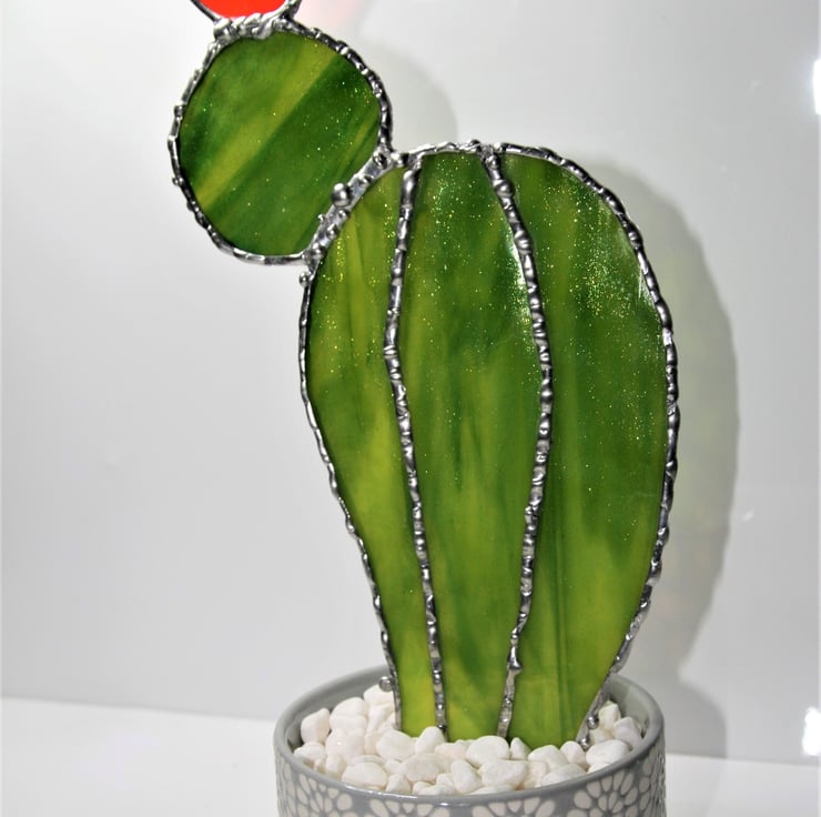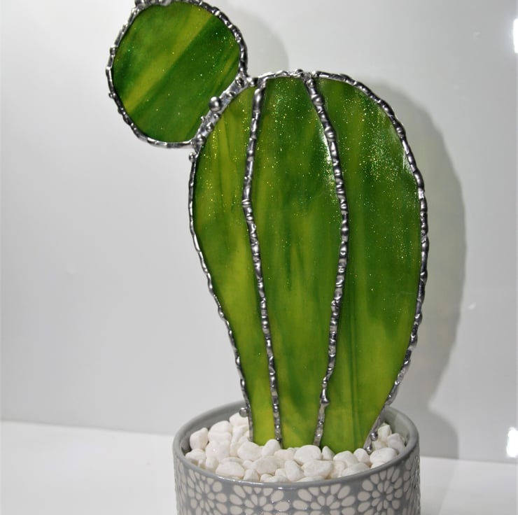 Handmade stained glass cacti are an absolute delight to own. The speciality glass always looks great and no need to water! This would look great on any window sil.